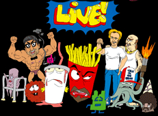 Mixing TV clips, live music from their latest album, Have Yourself A Meaty Little Christmas, along with skits featuring both the ATHF and SQUIDBILLIES characters, the live show will include Meatwad and Shake onstage (through the puppet wizardry of former Jim Henson designer and fabricator James Wojtal), as well as a Granny puppet from Willis’ redneck squidriffic show, SQUIDBILLIES. You’ll also be treated to short comedy films available ONLY at these live shows, and get cool free Adult Swim merch to boot.